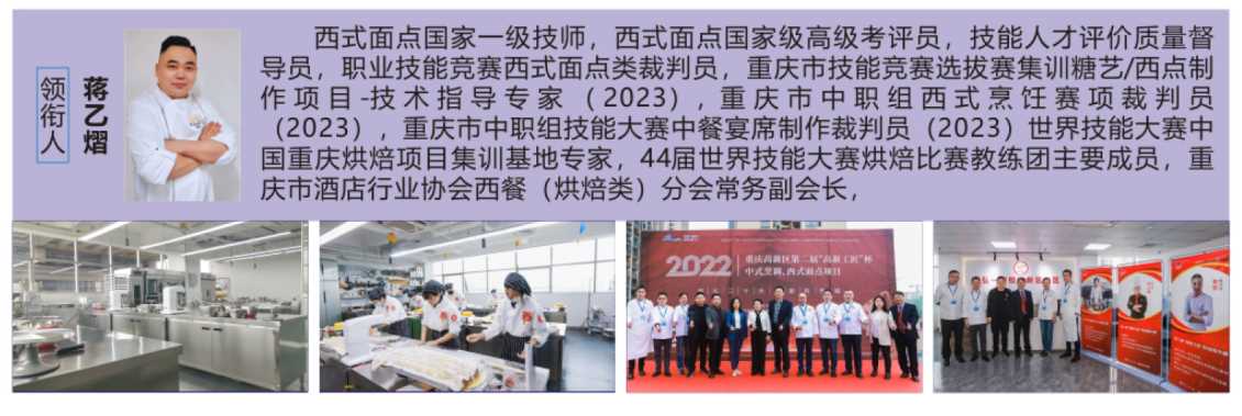 蒋乙熠(西式面点)技能大师工作室,2021年10月由重庆高新区政务服务和社会事务中心审批落户 重庆市弘一职业培训学校,是市级职业培训学校仅有的烘焙项目立项建设单位。